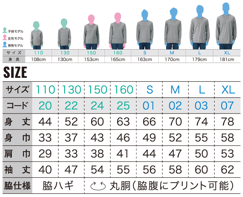 ●ロングTシャツのサイズは こちら(ロングT) で確認いただけます。