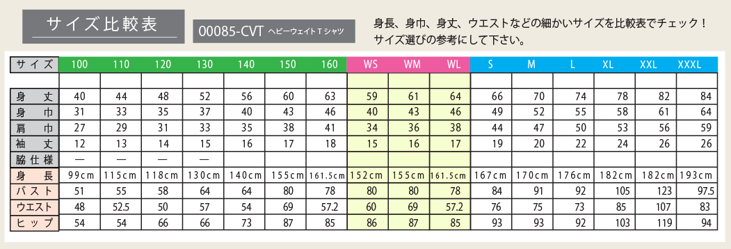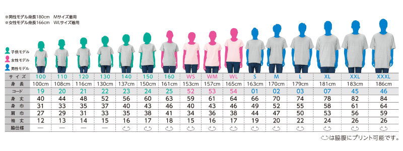 ●Tシャツのサイズ表は こちら で確認できます。